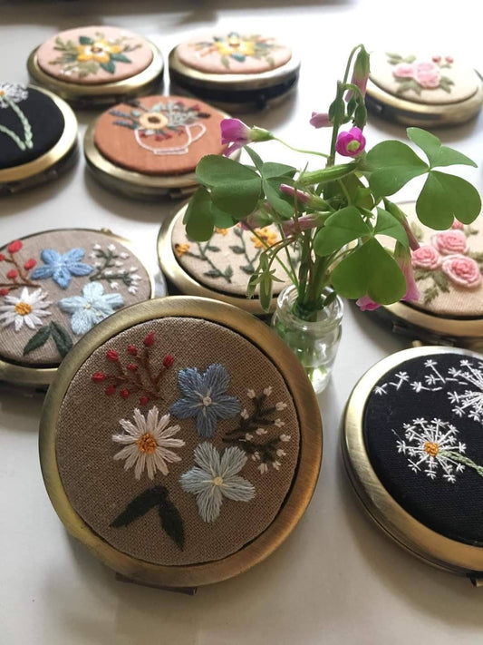 Floral Embroidered Compact Mirror, Collection Sophia
