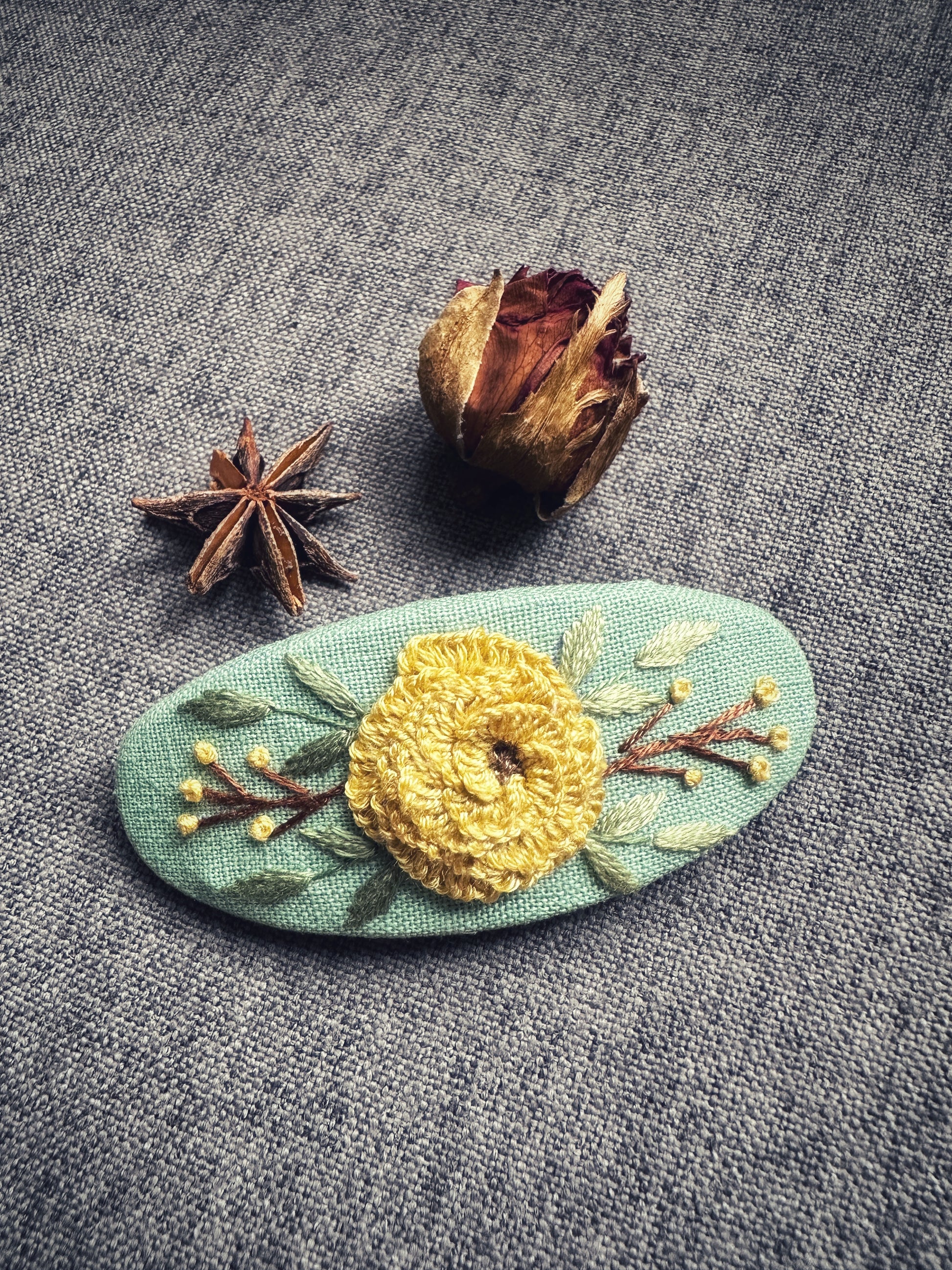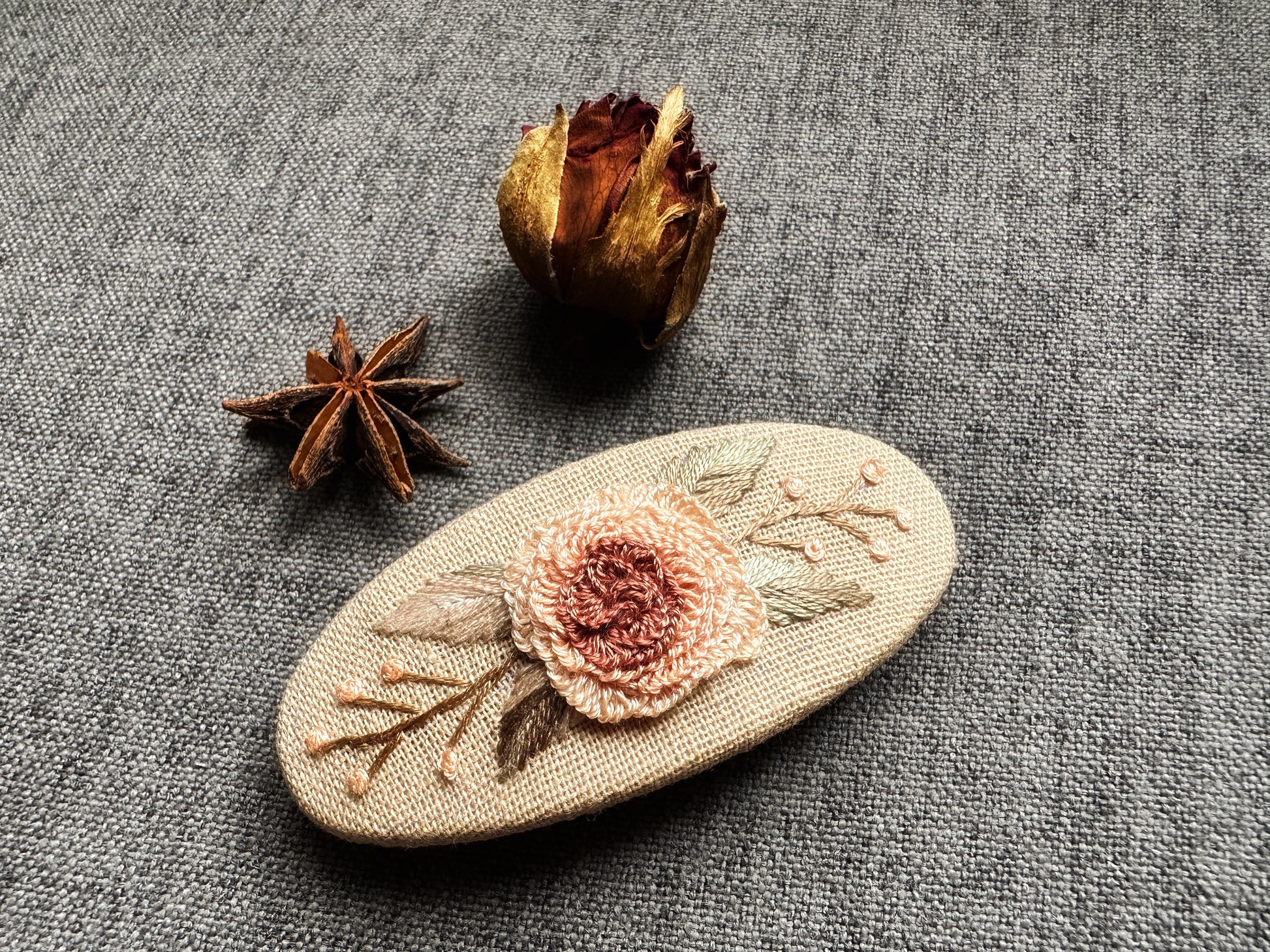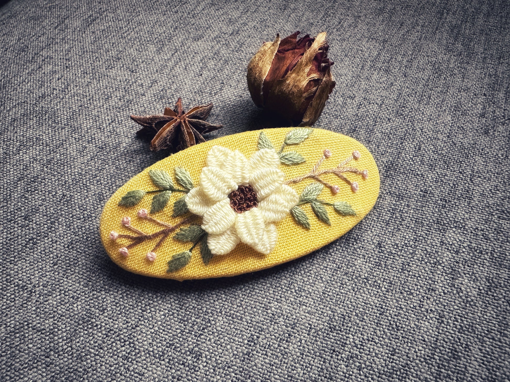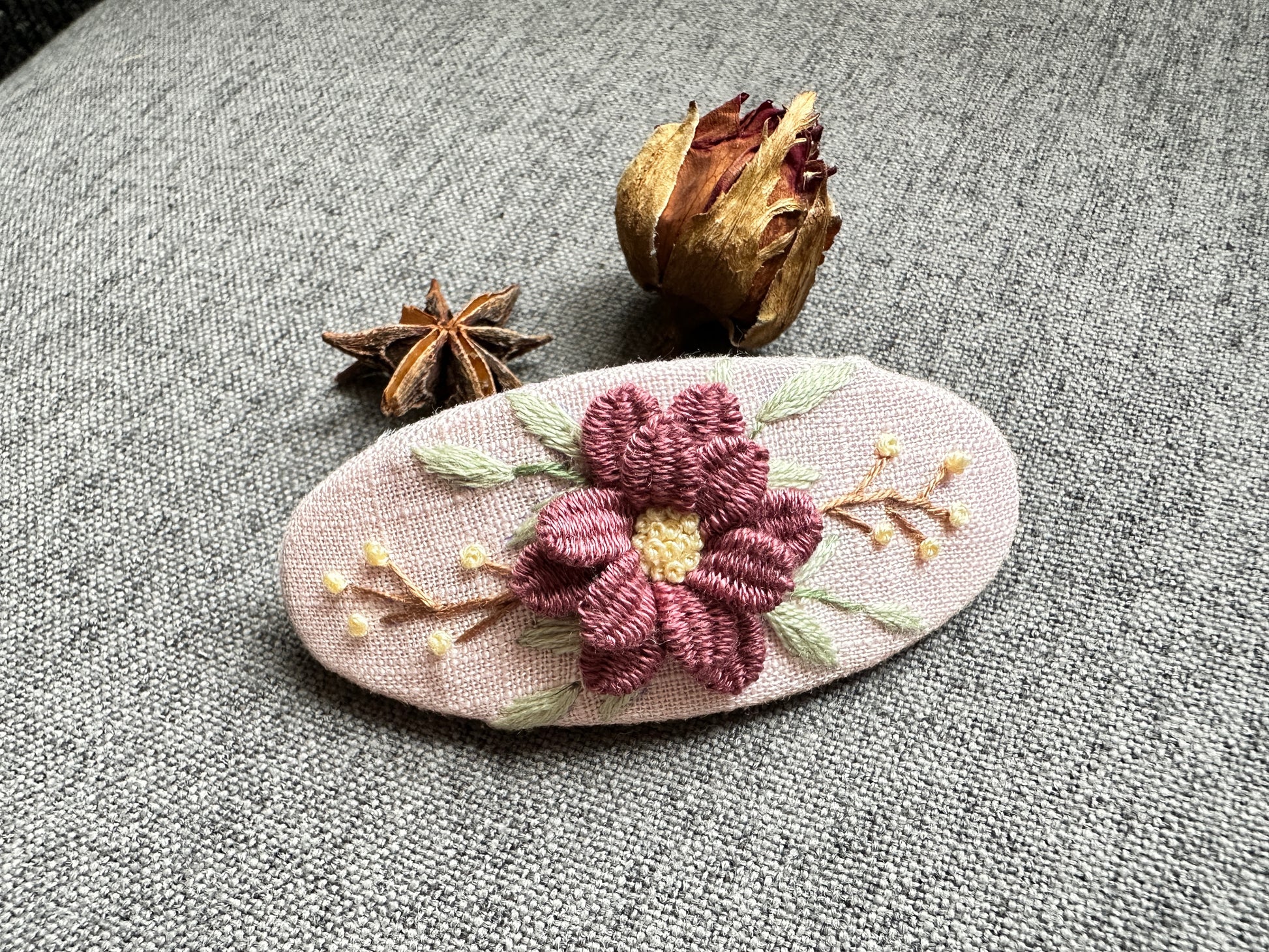 • Each hair clip is hand embroidered on sturdy stainless steel clip.