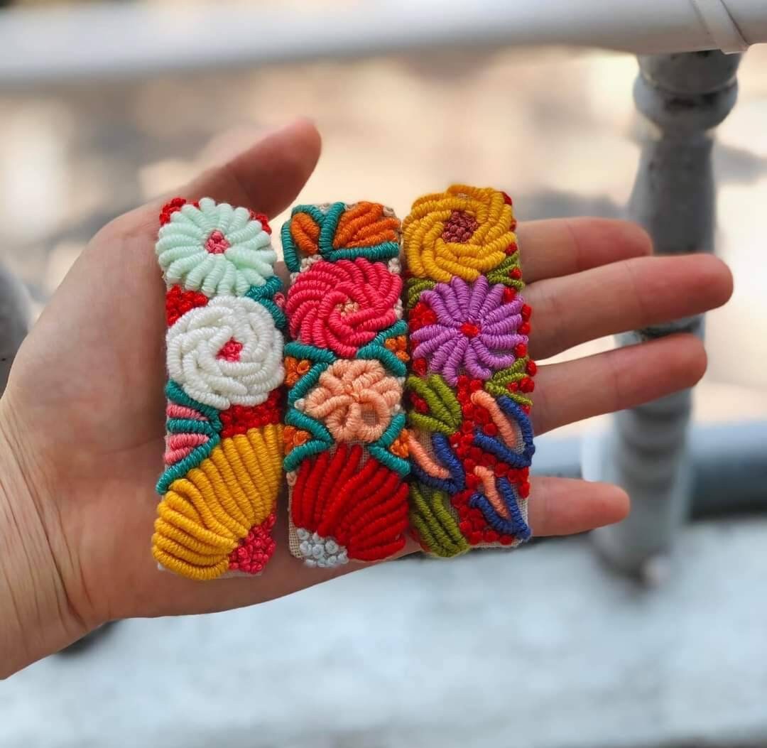 • Each hair barrette is hand embroidered on sturdy stainless steel clip.