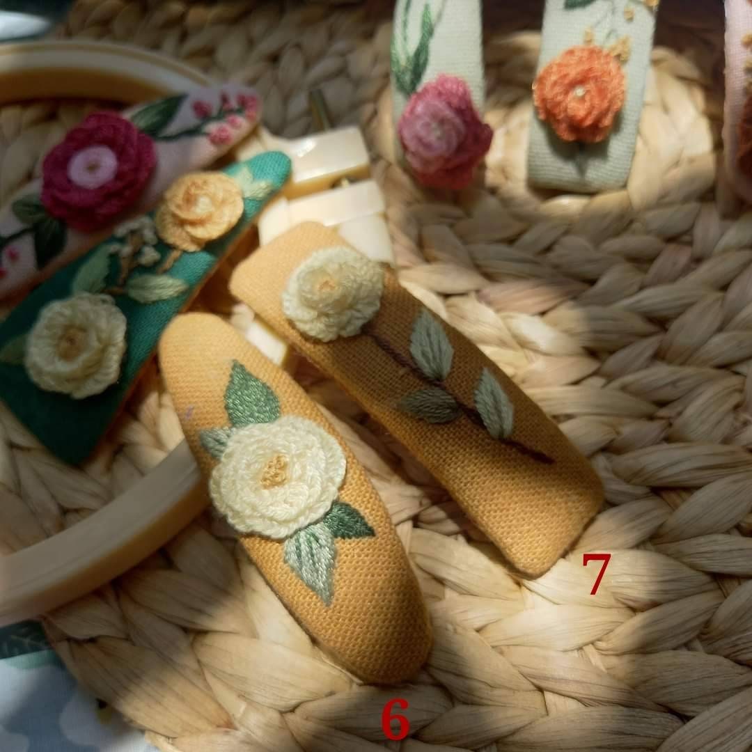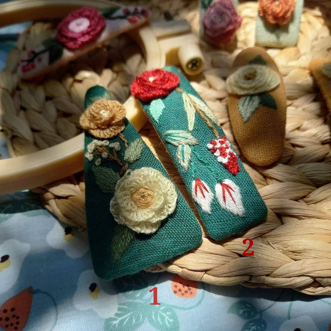 • Each hair clip is hand embroidered on sturdy stainless steel clip.