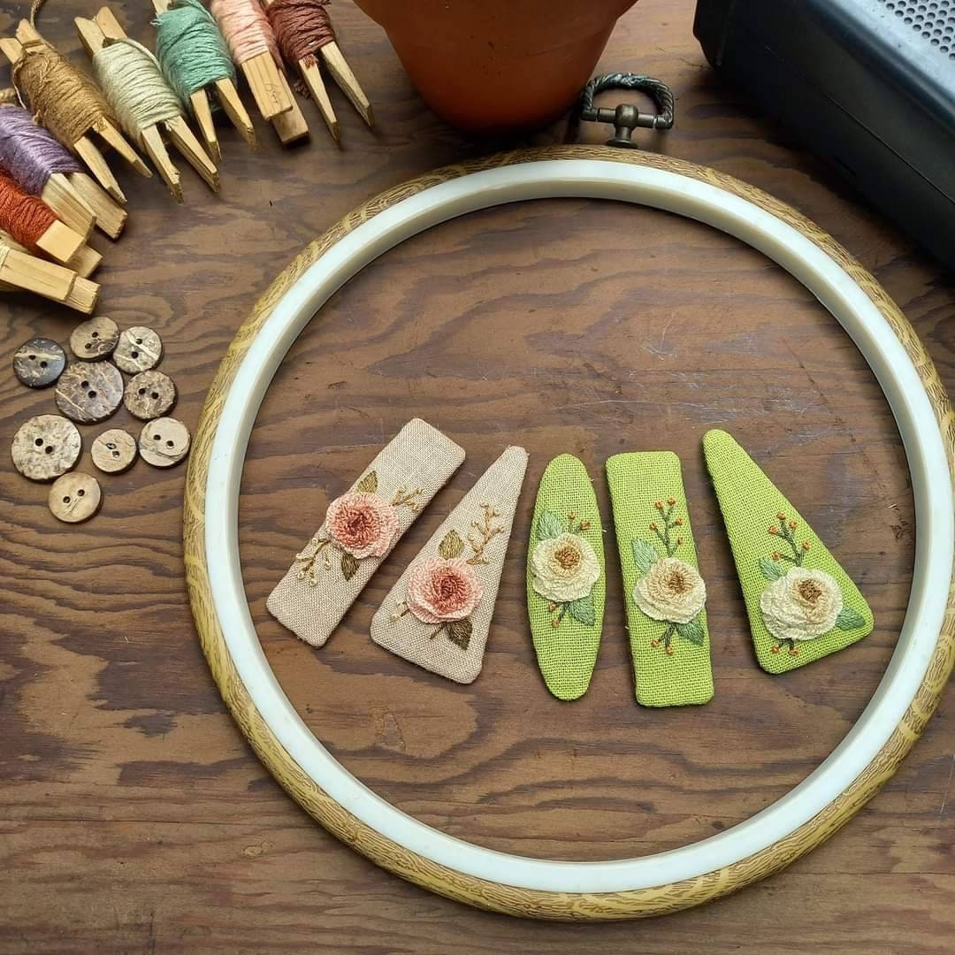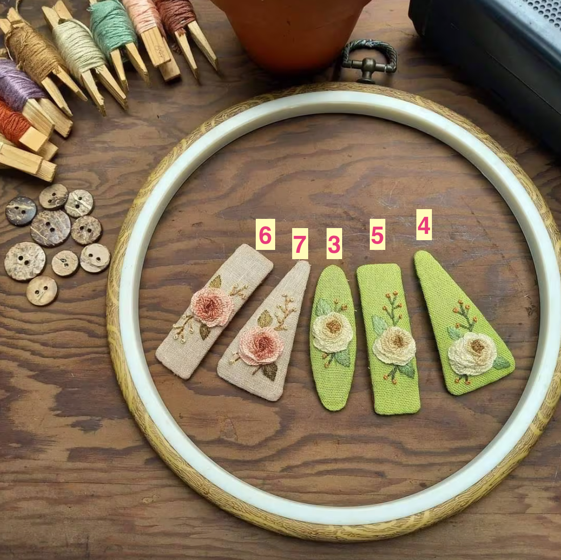 • Each hair clip is hand embroidered on sturdy stainless steel clip.