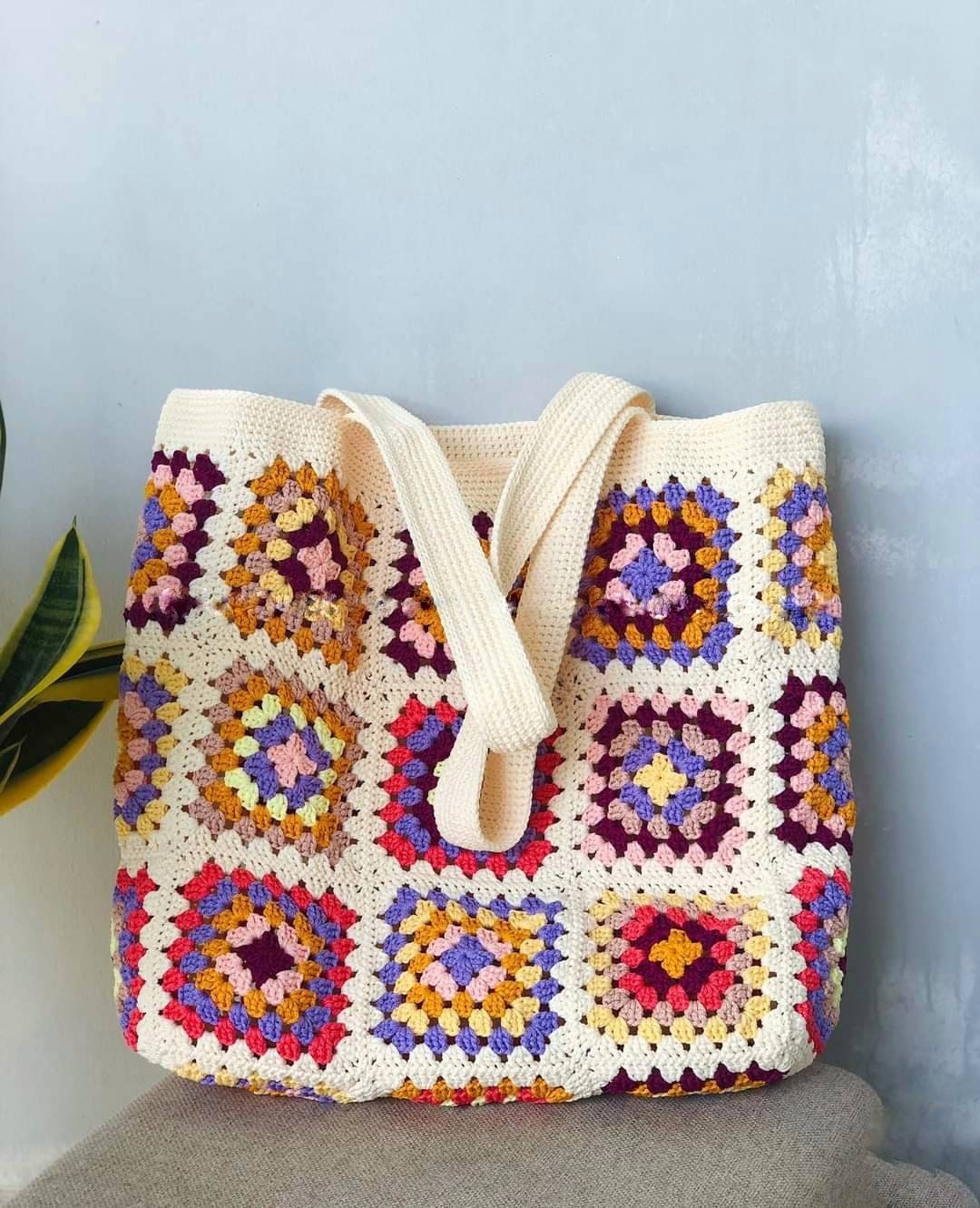 Colorful Hand-Crochet Tote Bag