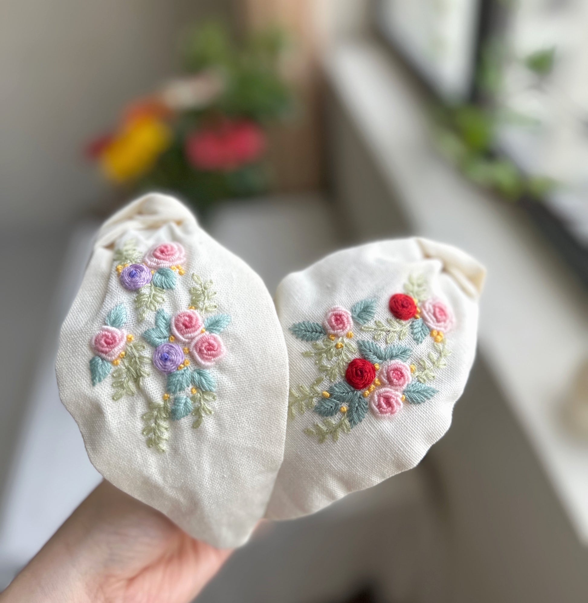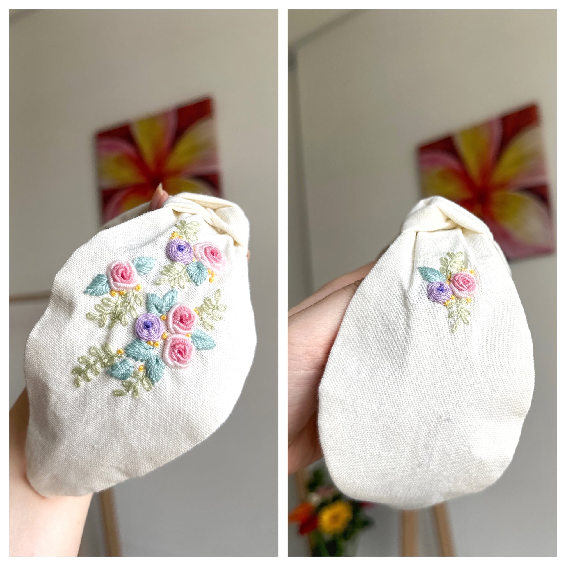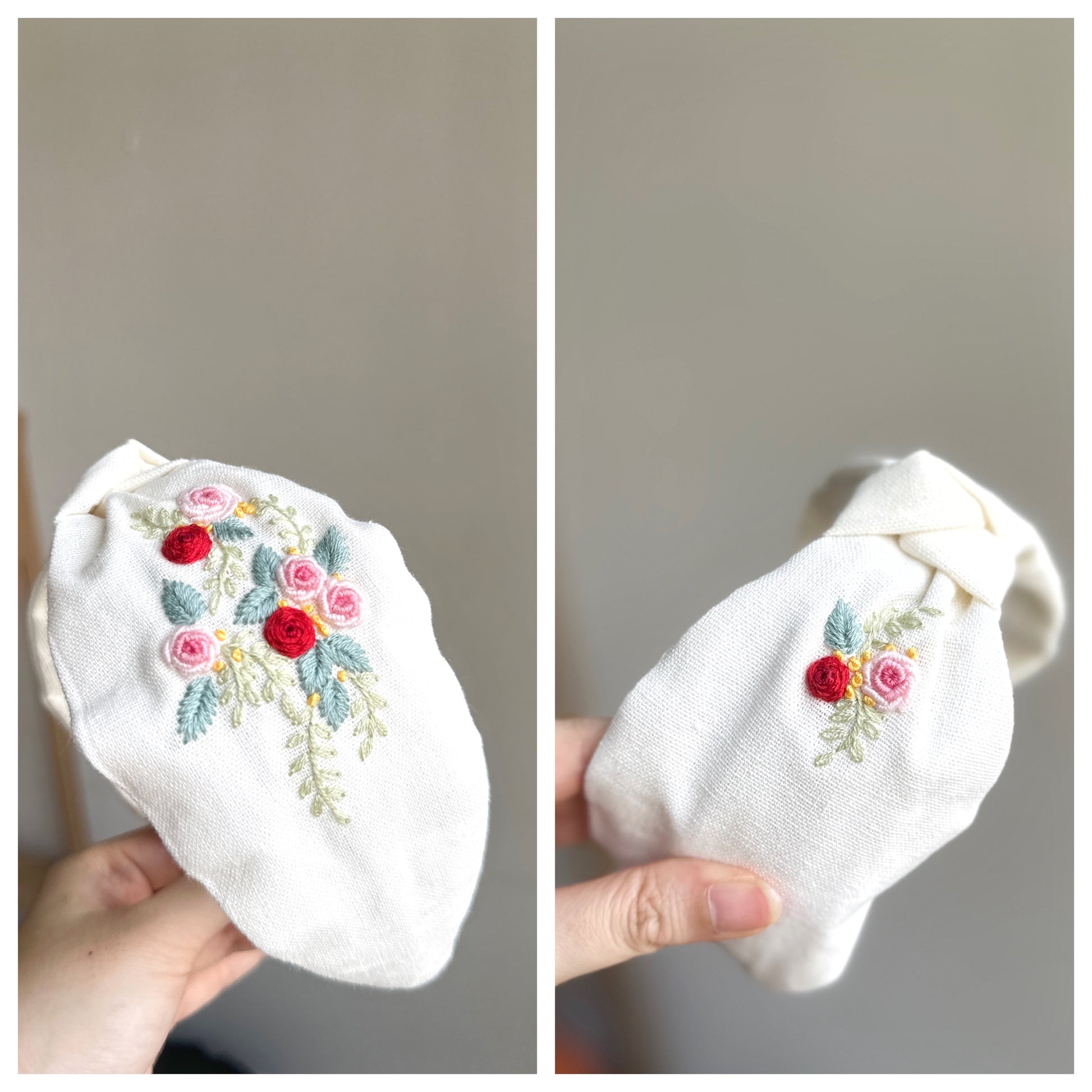 - Embroidery is on one side of the headband