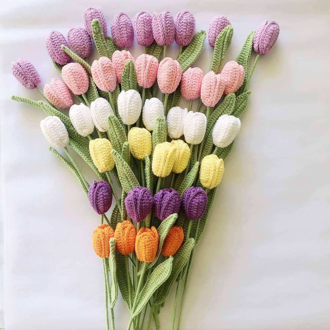 π· These crochet tulip are 100% knitted by hand. These tulip bouquet are timeless and can be kept forever and is great item for home decoration.