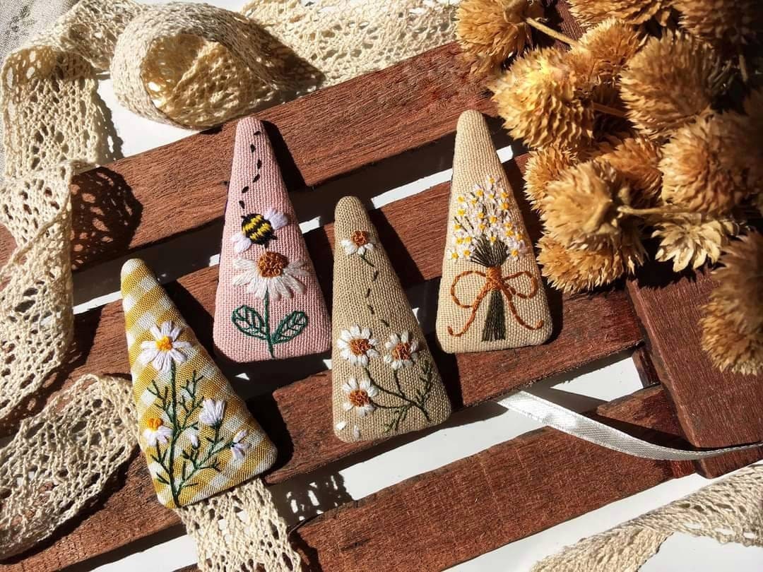 • Each hair barrette is hand embroidered on sturdy stainless steel clip.