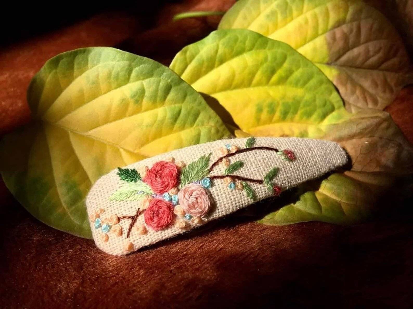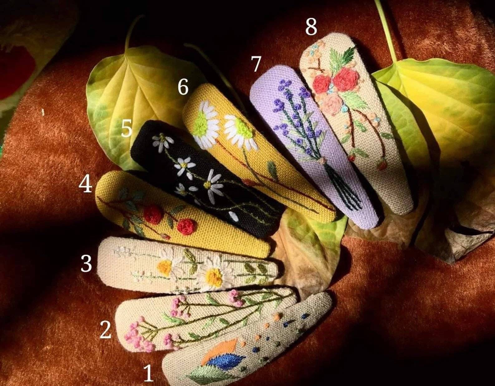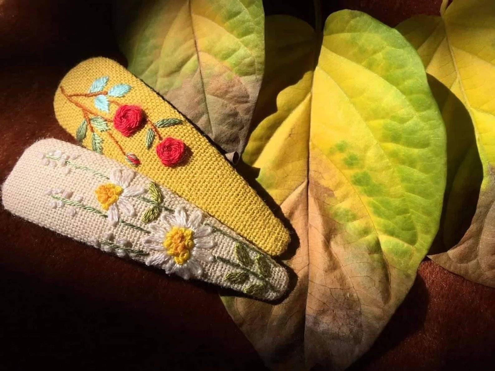 • Each hair clip is hand embroidered on sturdy stainless steel clip.