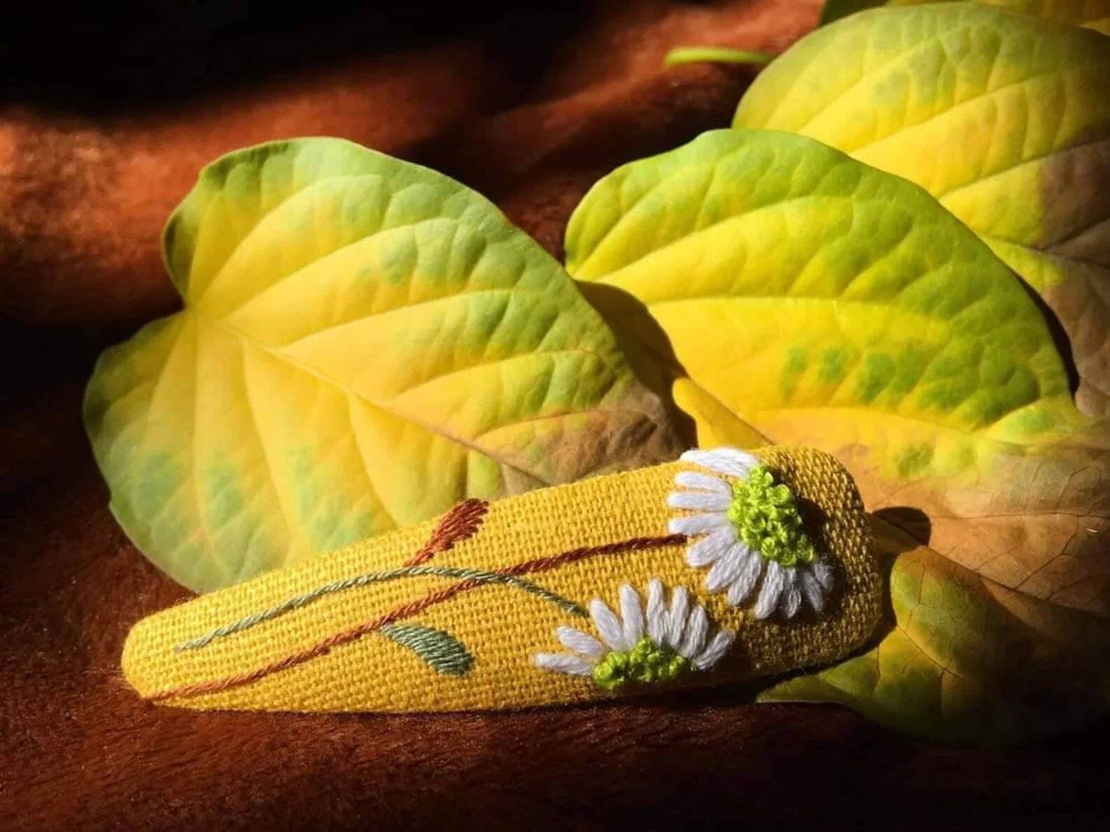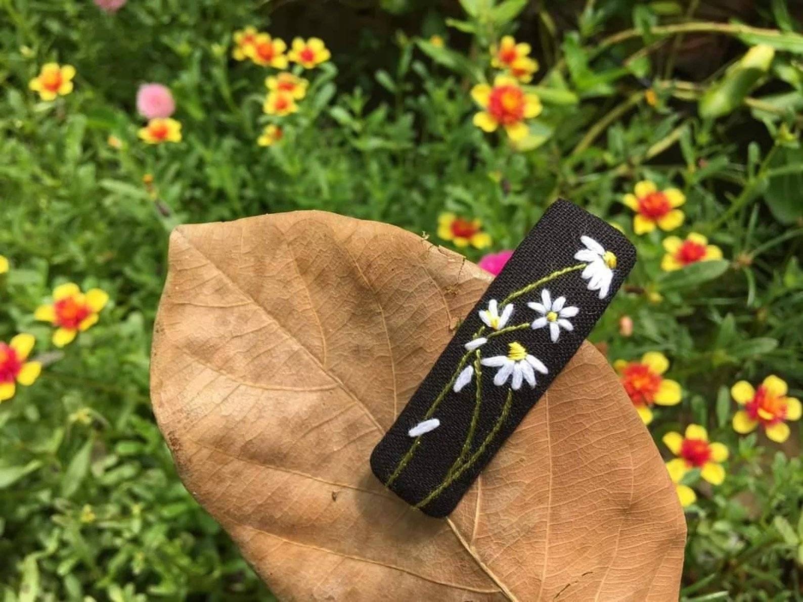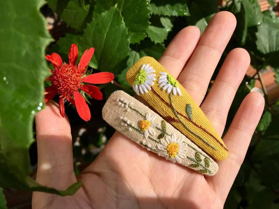 • Each hair clip is hand embroidered on sturdy stainless steel clip.