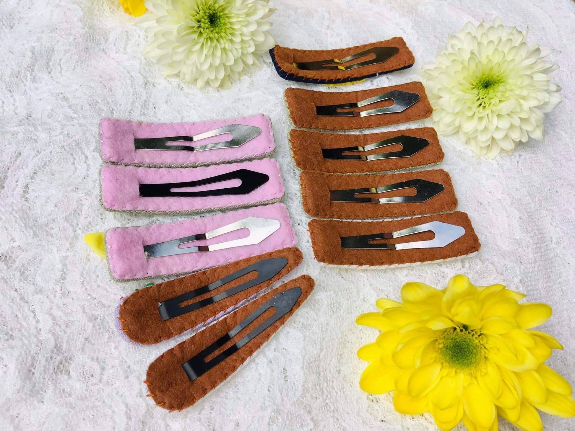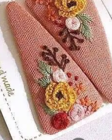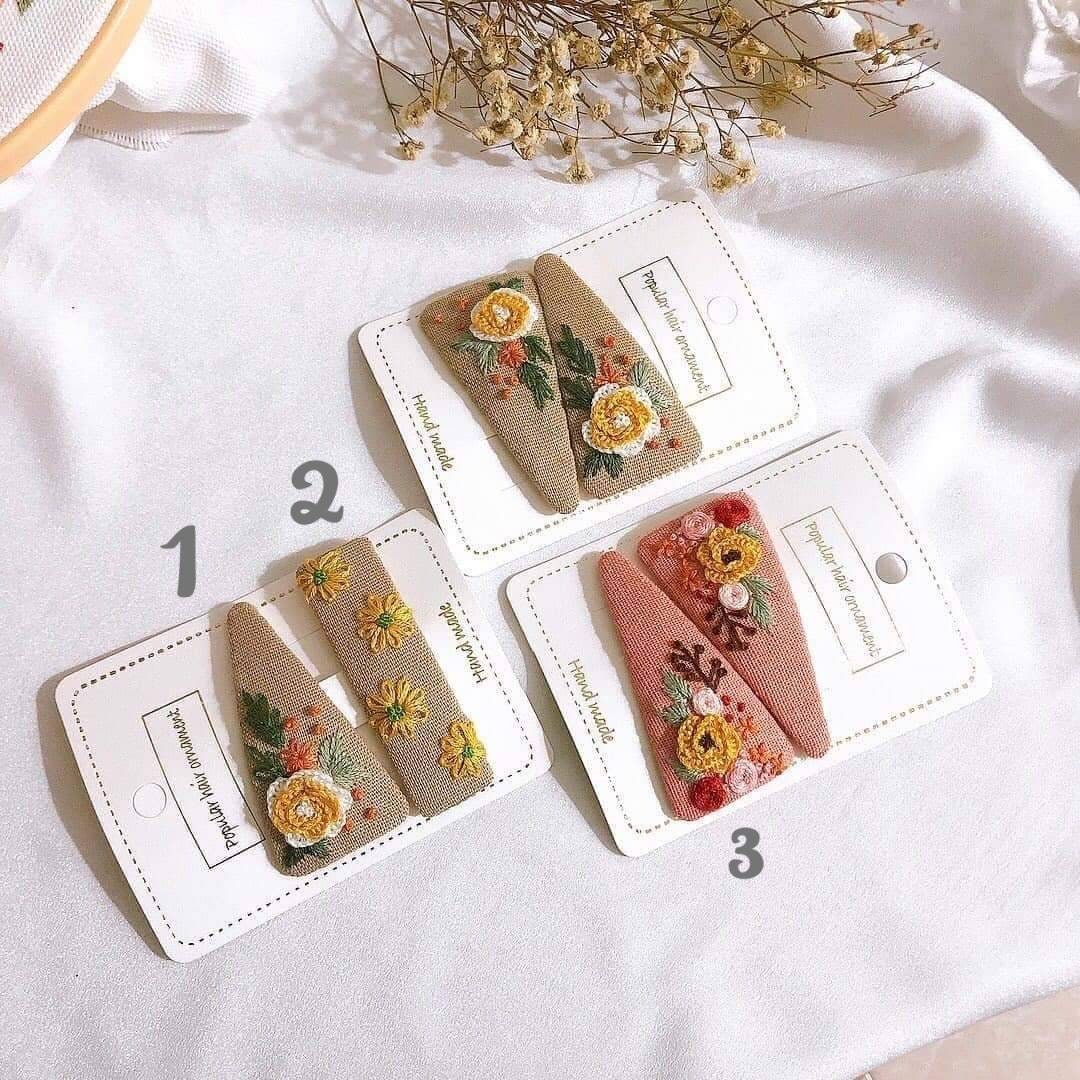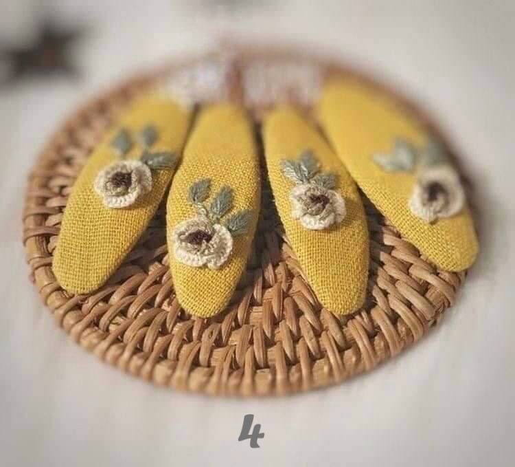 • Each hair clip is hand embroidered on sturdy stainless steel clip.