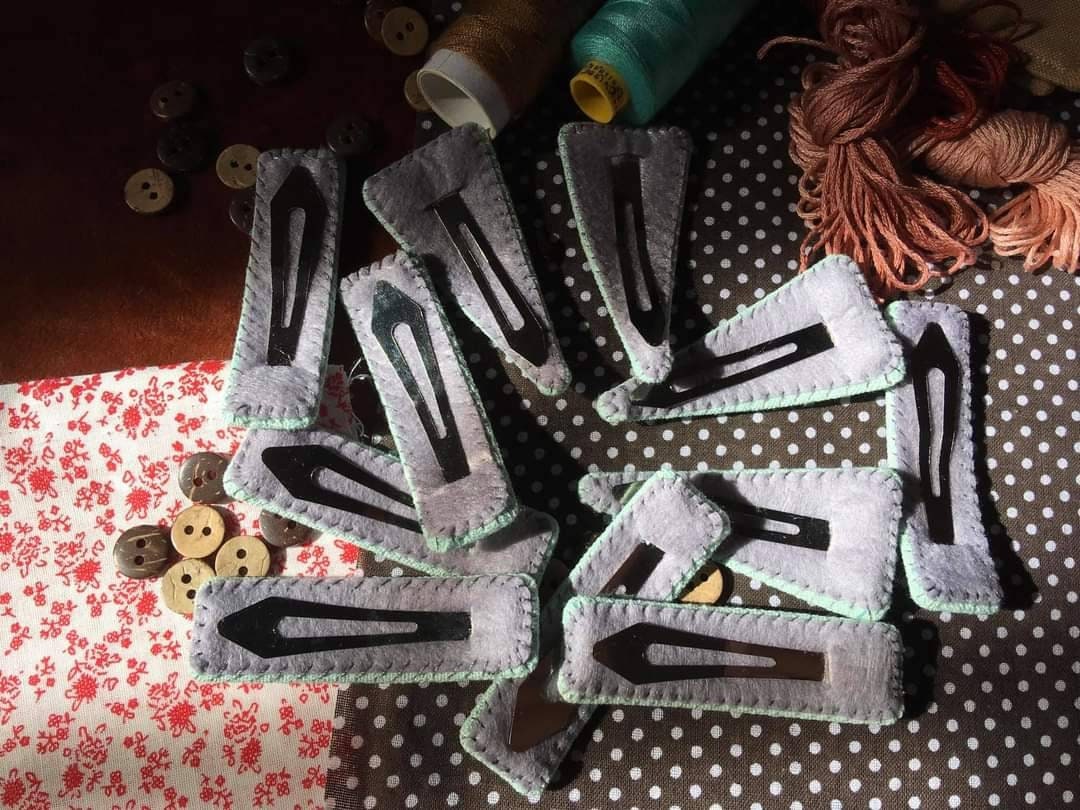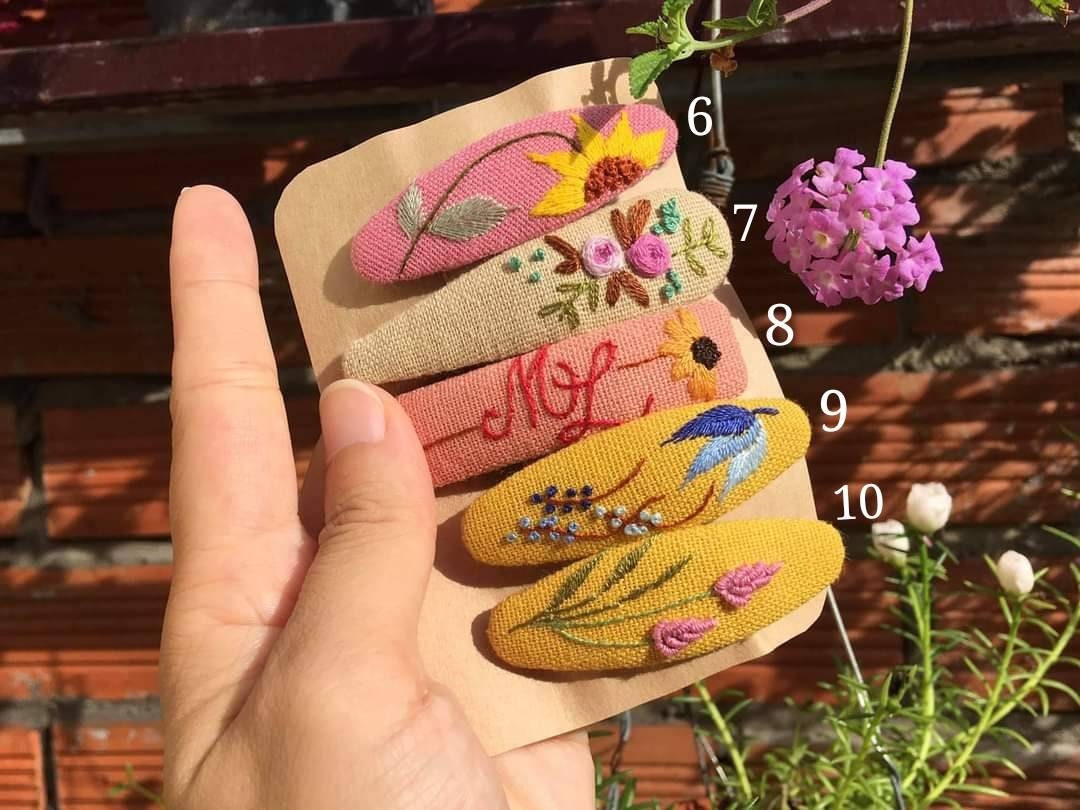 • Each hair clip is hand embroidered on sturdy stainless steel clip.