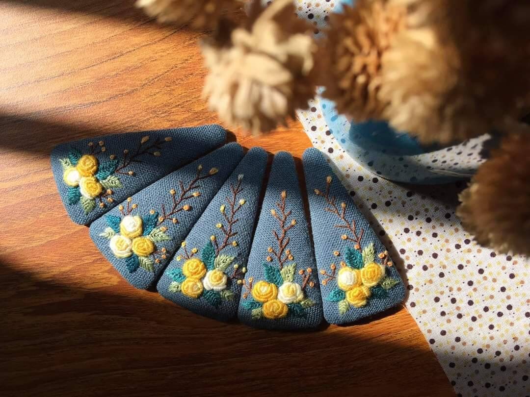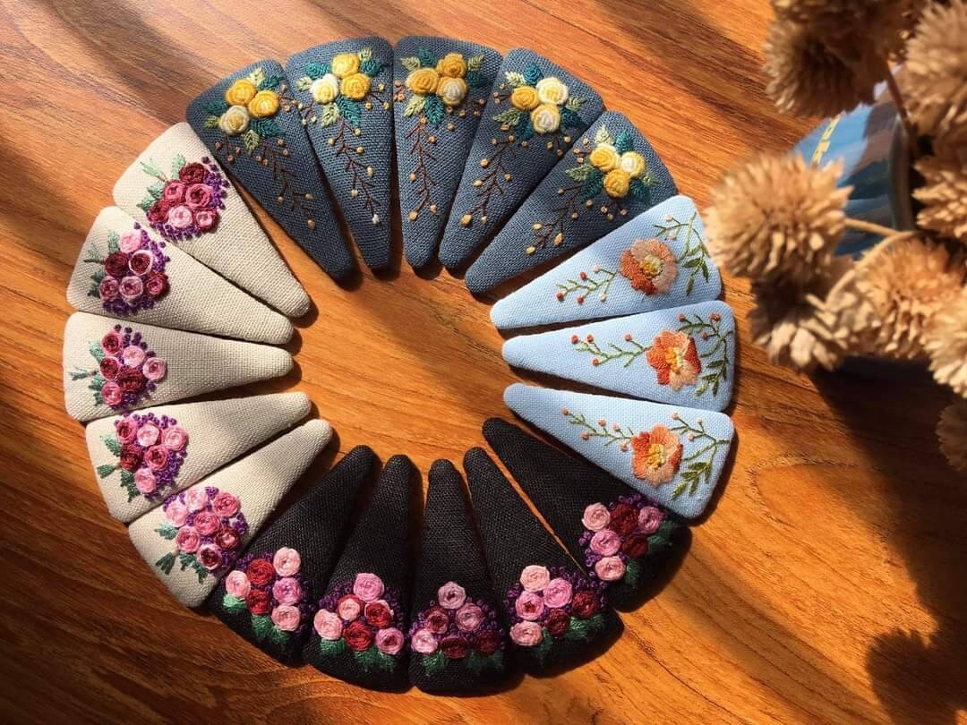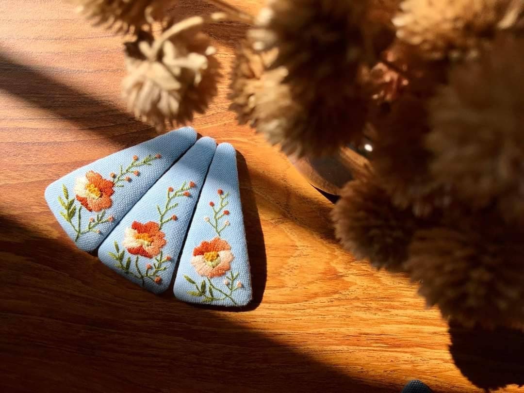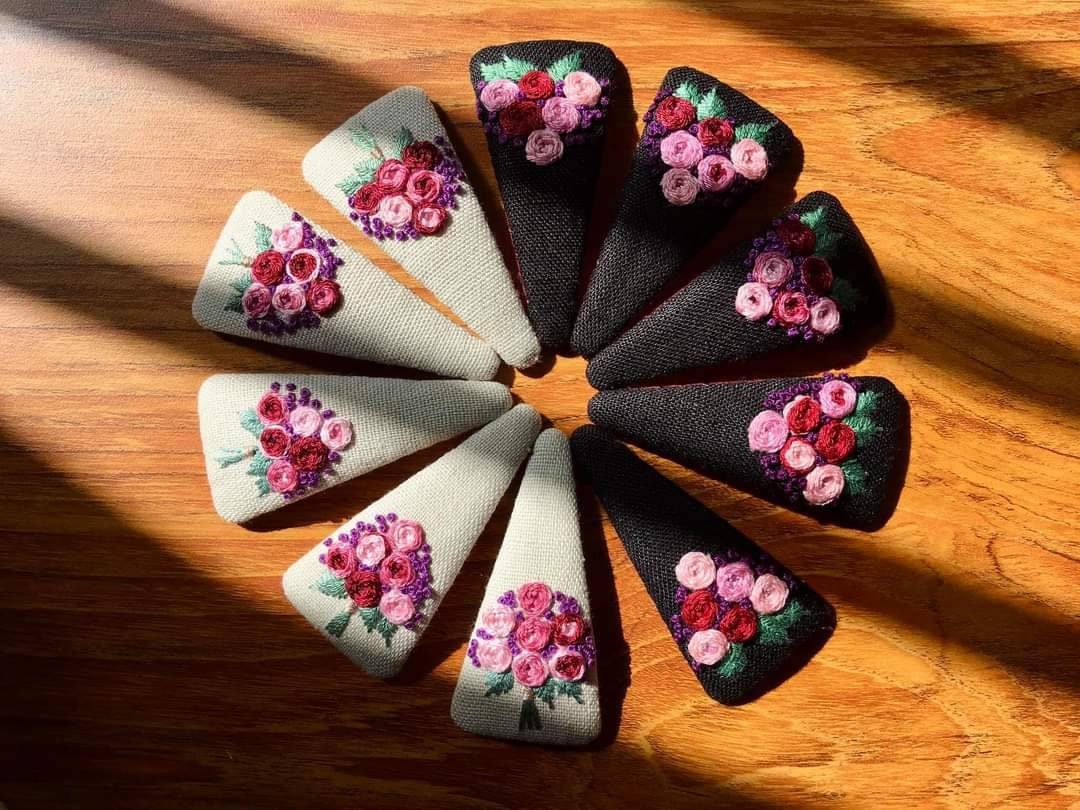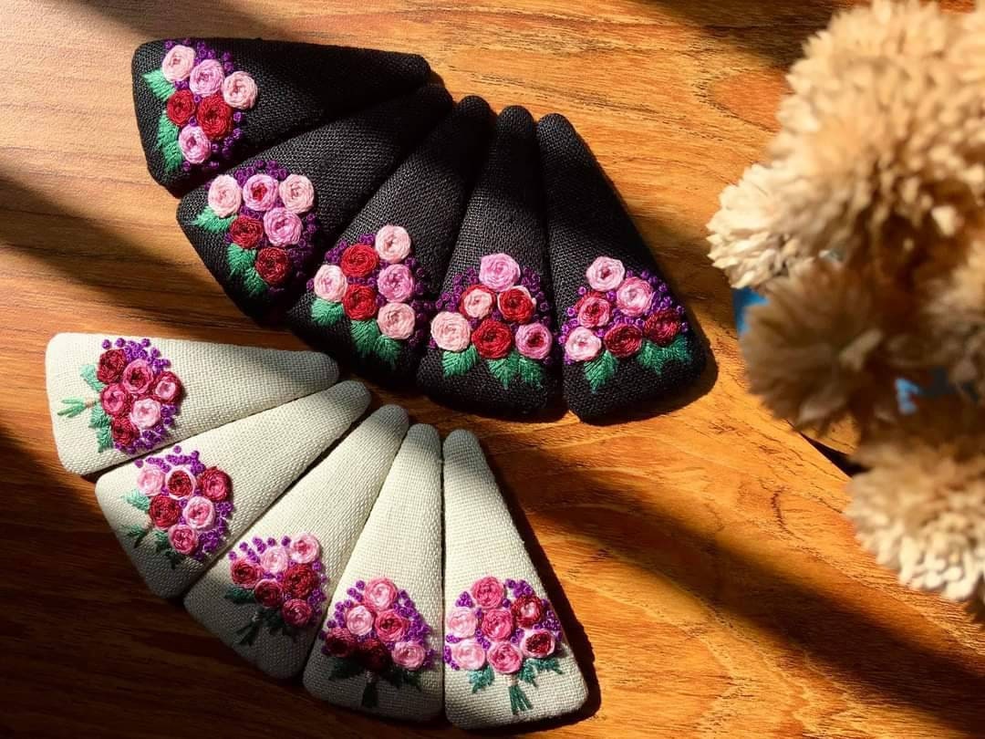 • Each hair clip is hand embroidered on sturdy stainless steel clip.