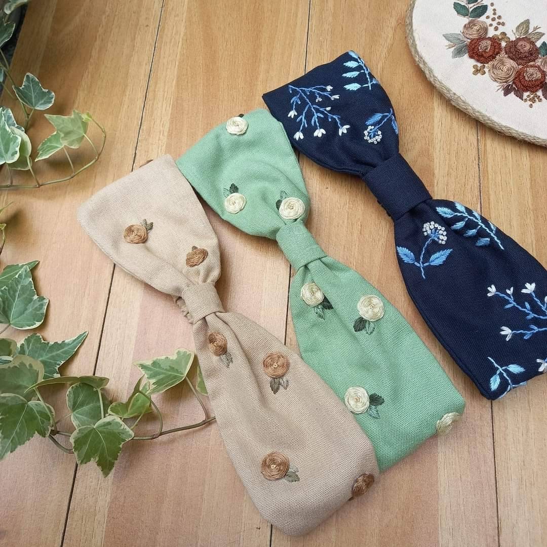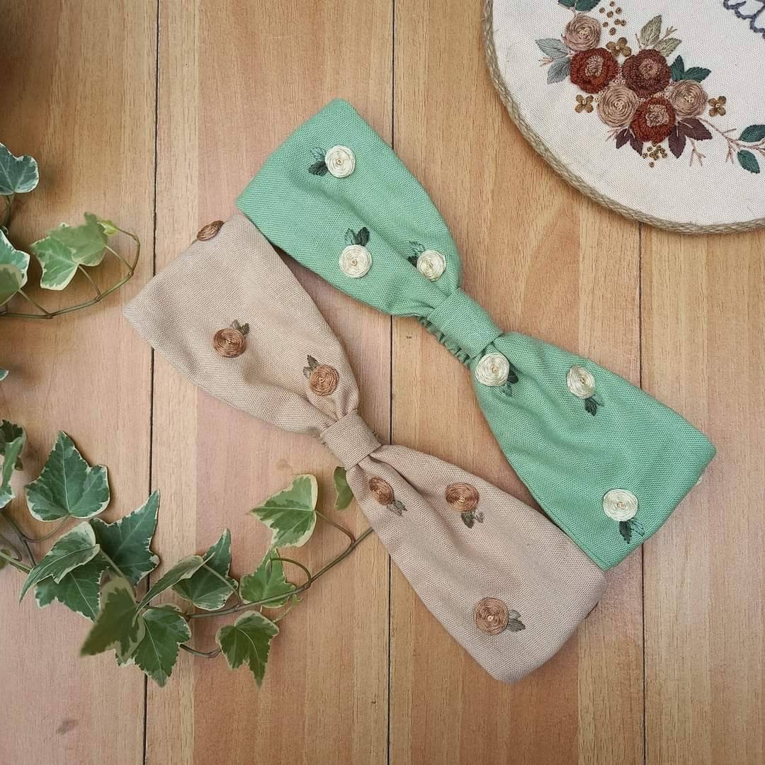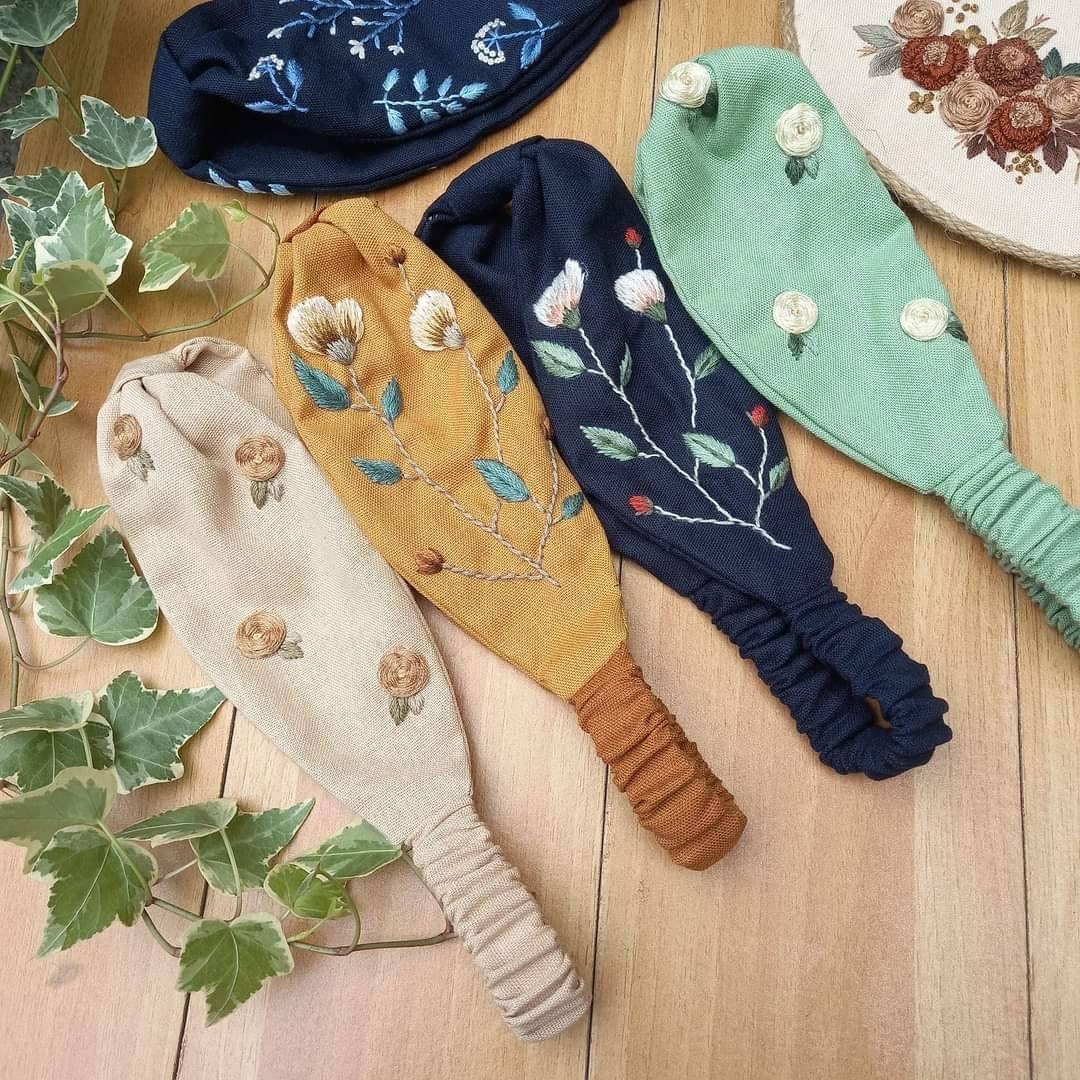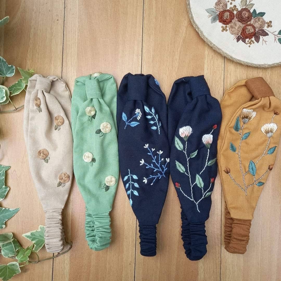 • This linen hair turban is carefully hand stitched with beautiful floral embroidery pattern. This unique design head piece will make a perfect hair accessory for your final look, can easily pair with any outfit in many occasions.