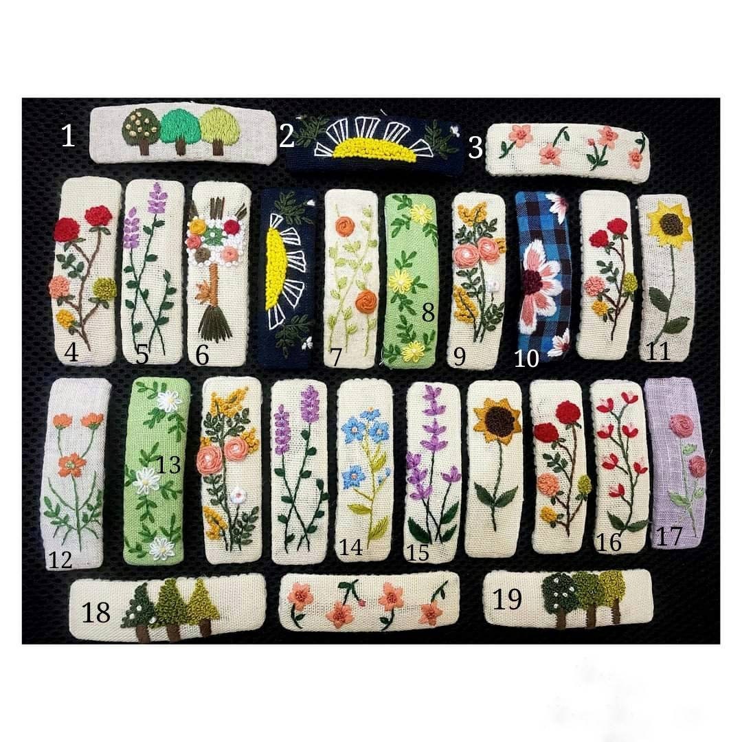 • Each hair barrette is hand embroidered on sturdy stainless steel clip.