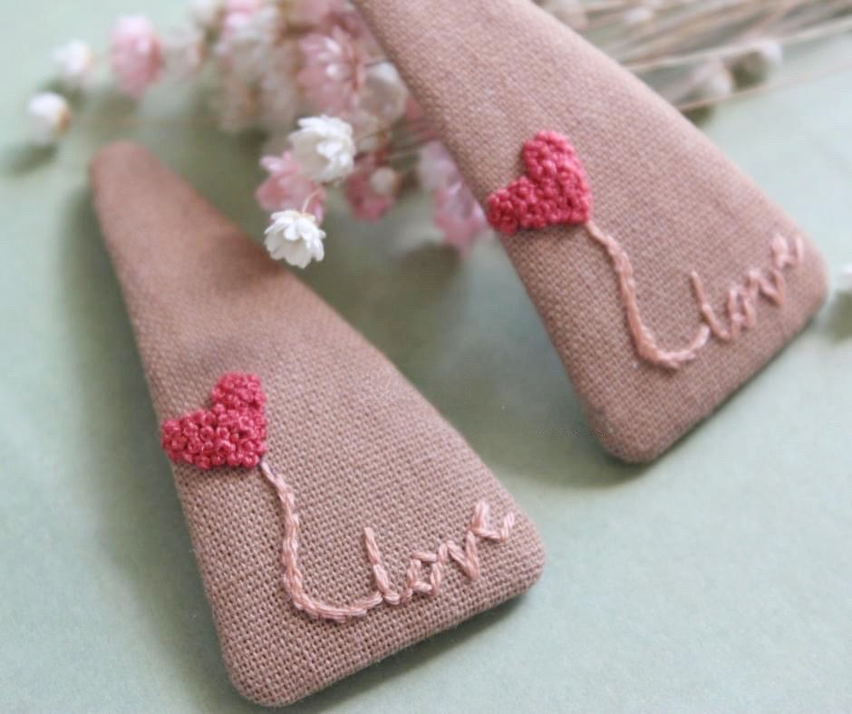 Heart Embroidered Hair Barrette, Collection Valentine's