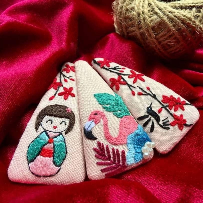 • Each hair barrette is hand embroidered on sturdy stainless steel clip.