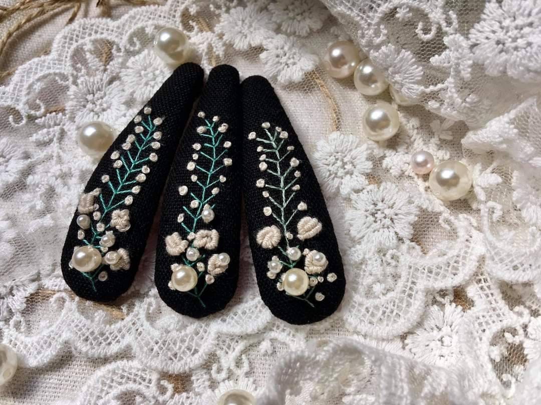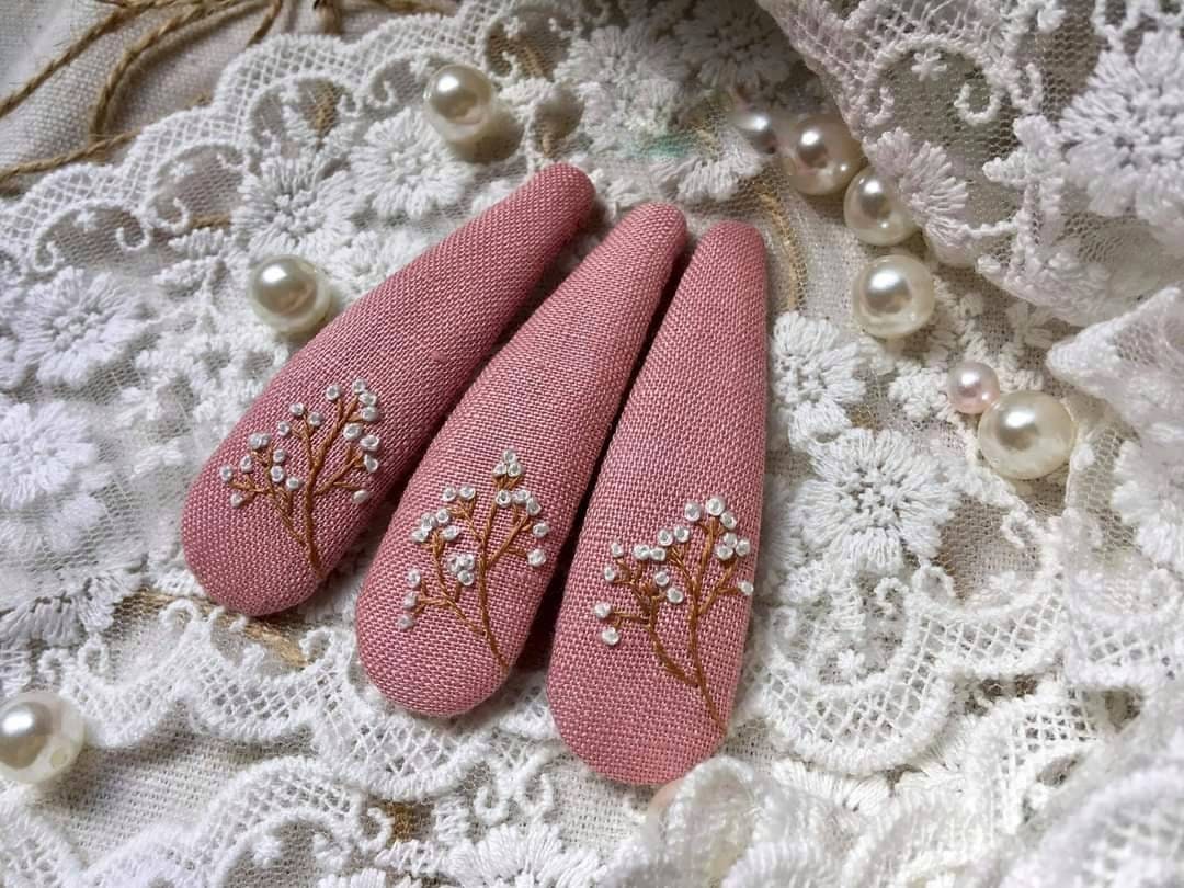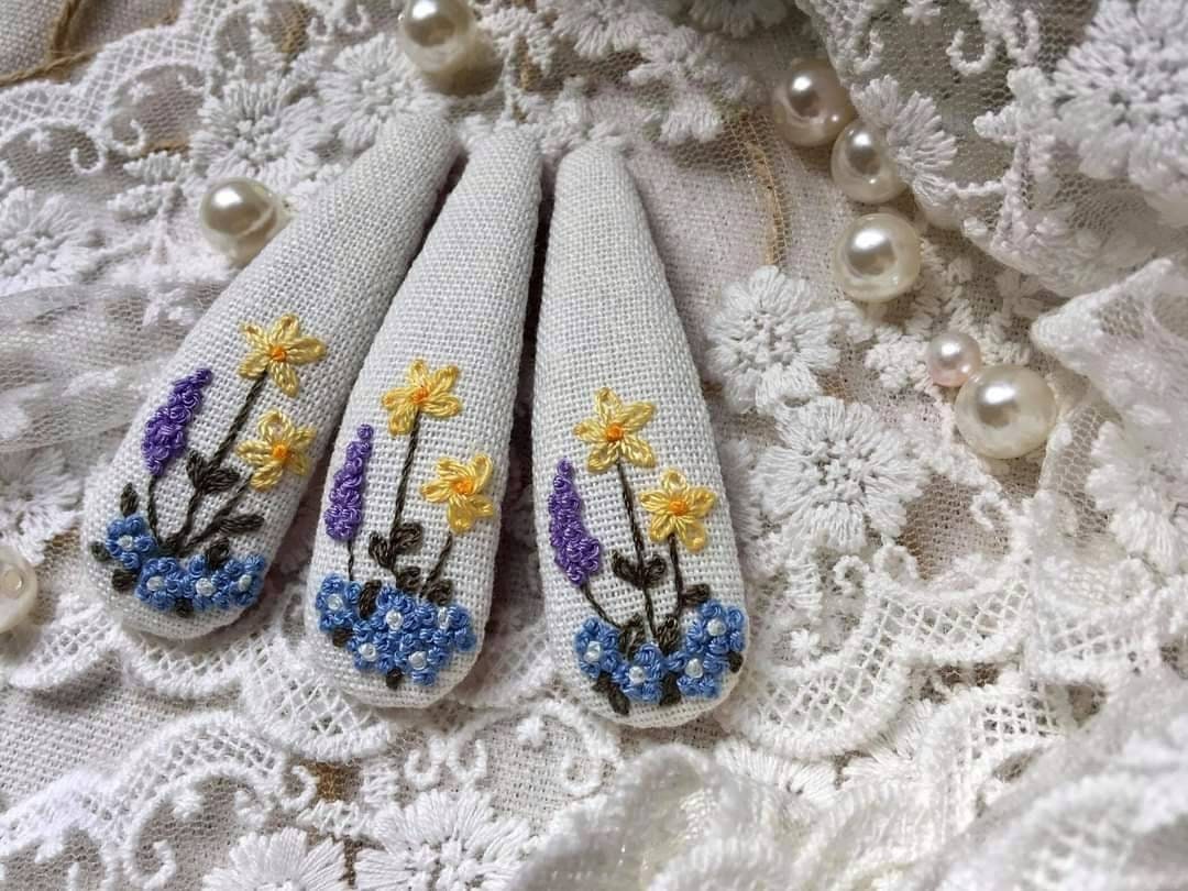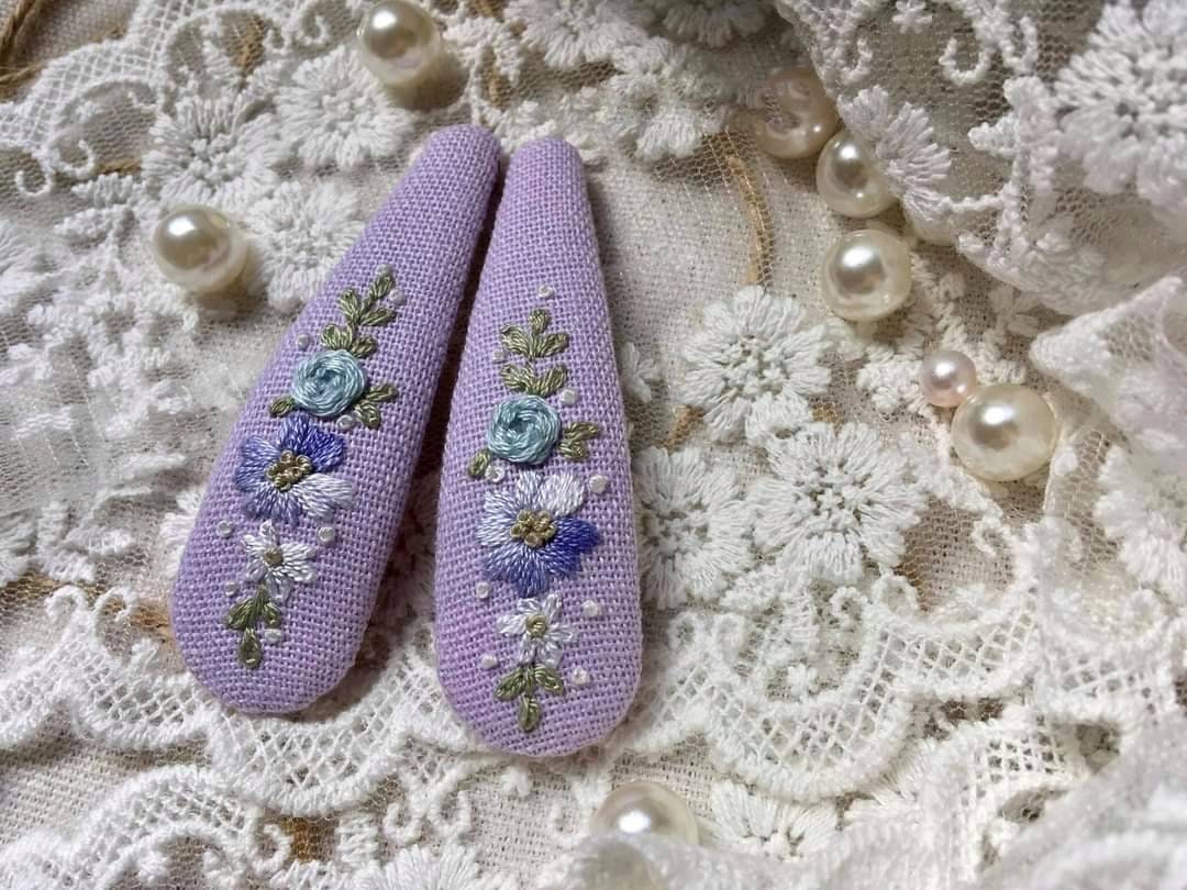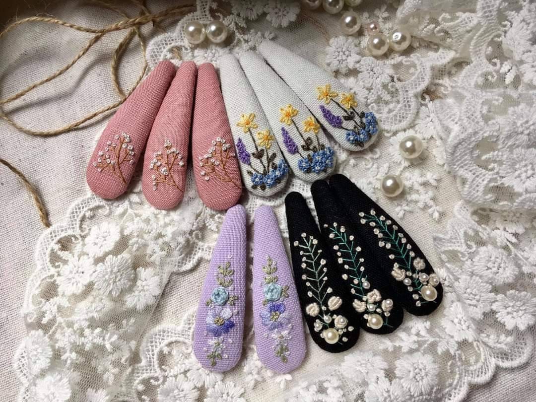 • Each hair clip is hand embroidered on sturdy stainless steel clip.