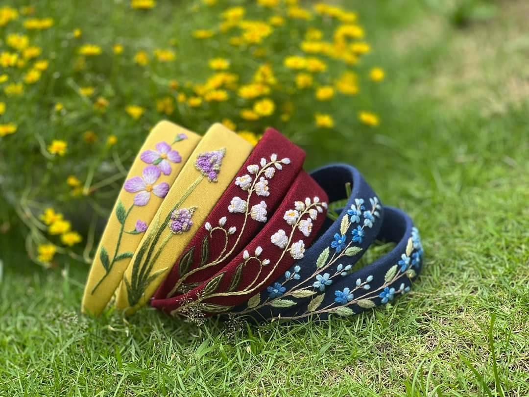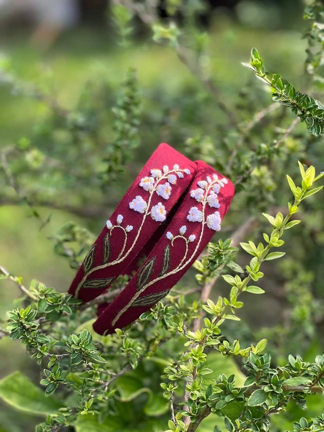 Lily of The Valley, Forget-me-not Orchid Embroidered Headband, Collection Mila