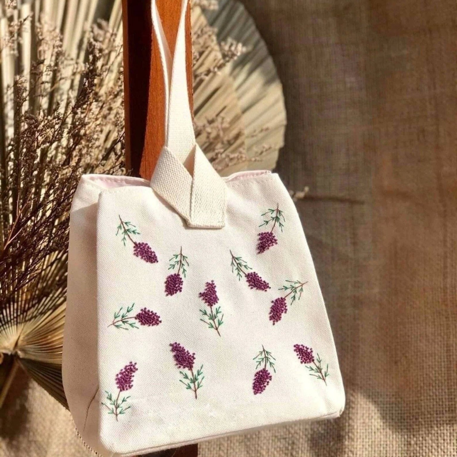 • Eco-Friendly recycled high quality 100% cotton canvas bag with cute flower embroidery.
