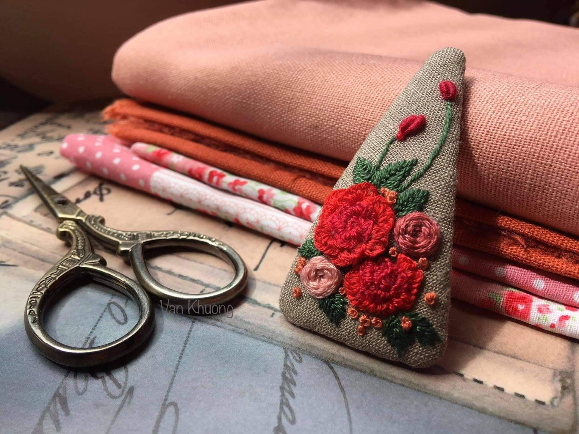 Rose Garden Embroidered Triangle Hair Barrette