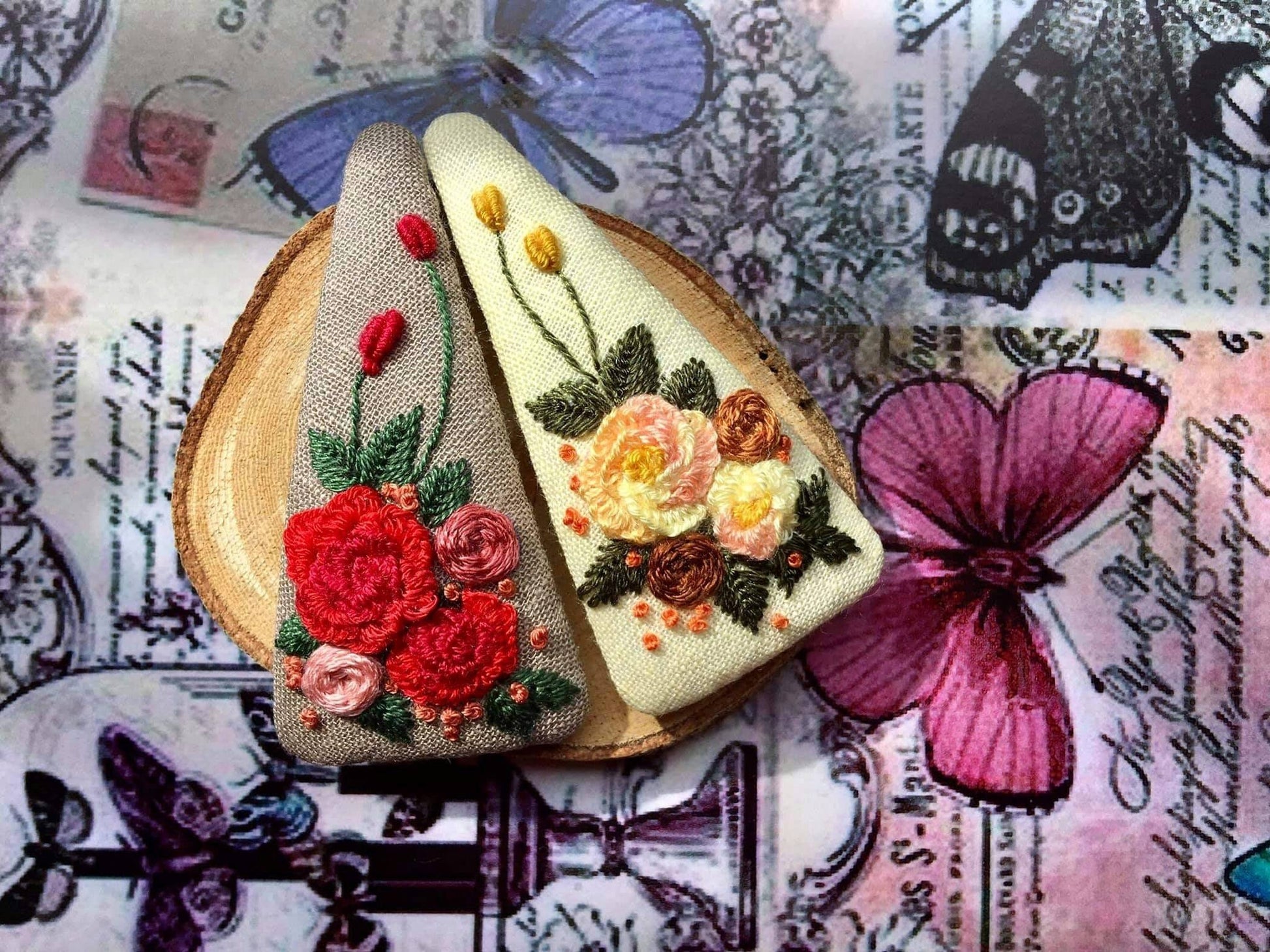 • Each hair barrette is hand embroidered on sturdy stainless steel clip.