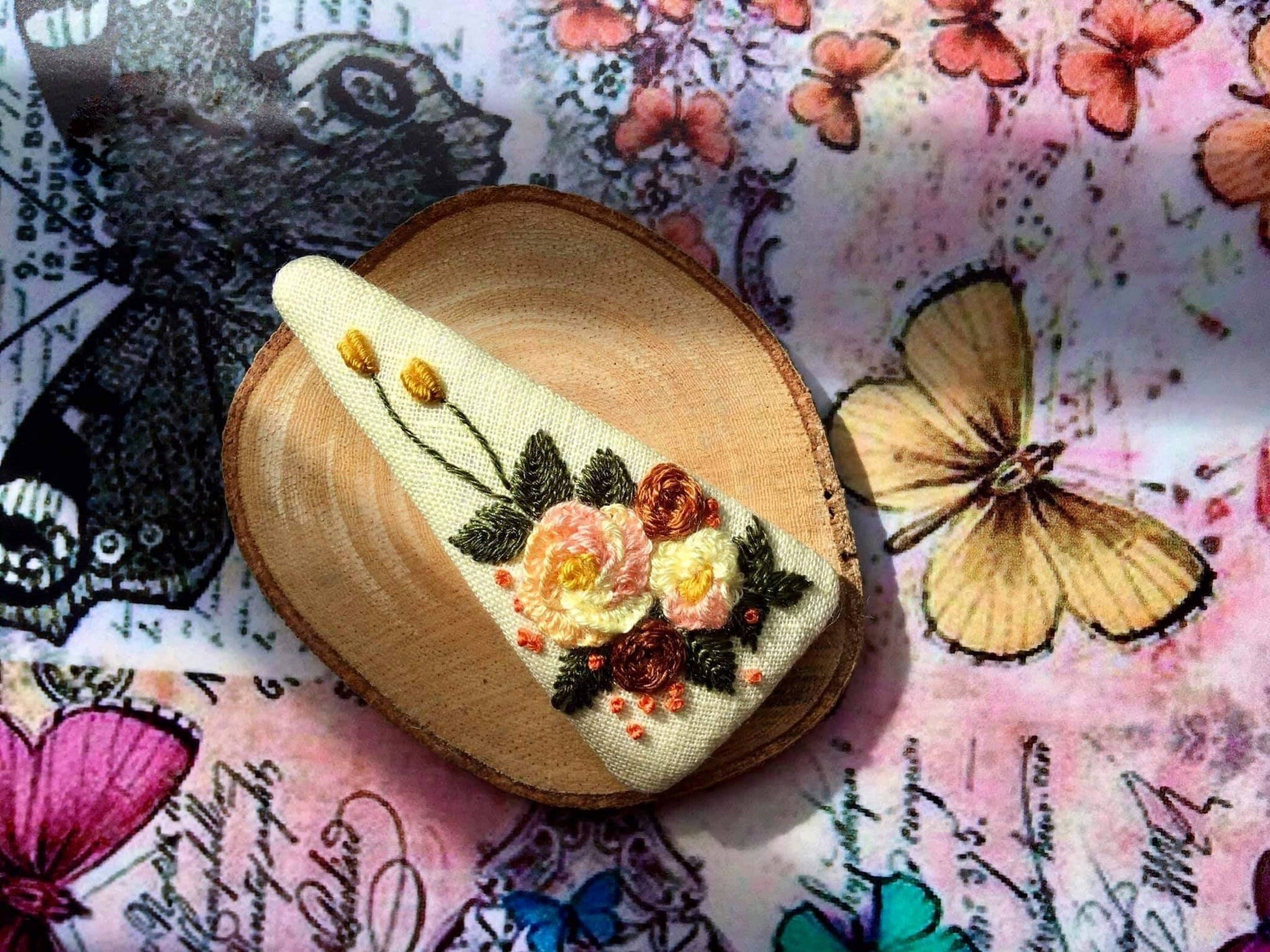 Floral Hand Embroidered Hair Clip