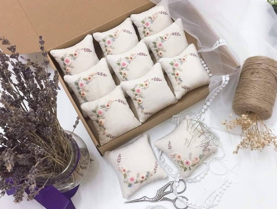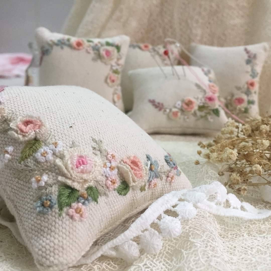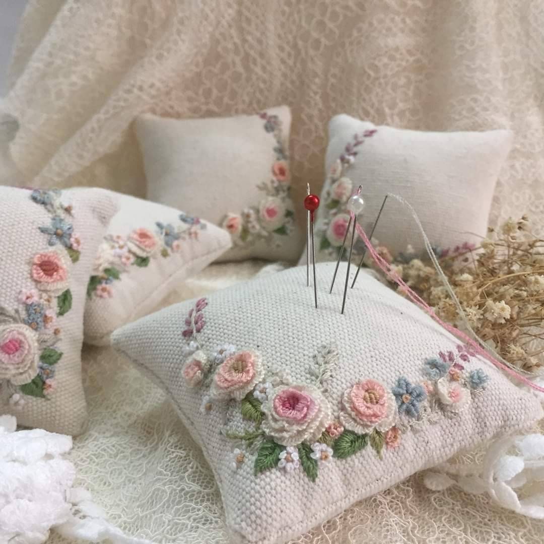 • This beautiful pincushion is 4x4", 100% hand embroidered of rose garden