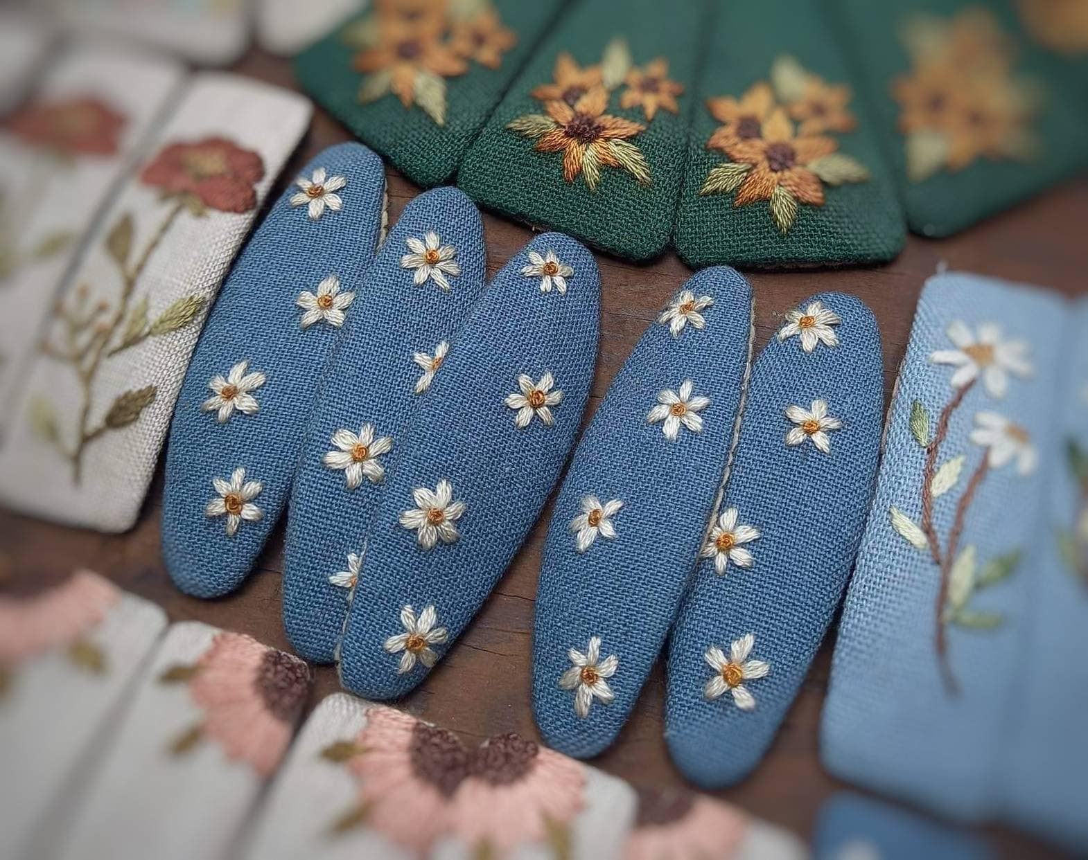 • Each hair clip is hand embroidered on sturdy stainless steel clip.