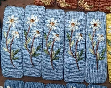 • Each hair clip is hand embroidered on sturdy stainless steel clip.